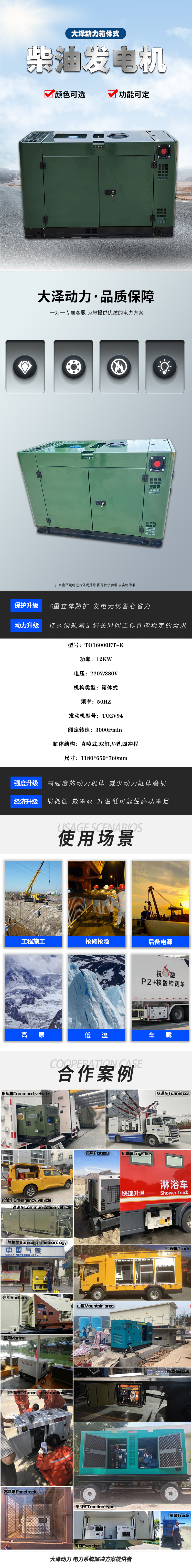 大澤動(dòng)力12KW靜音柴油發(fā)電機(jī)TO16000ET-K